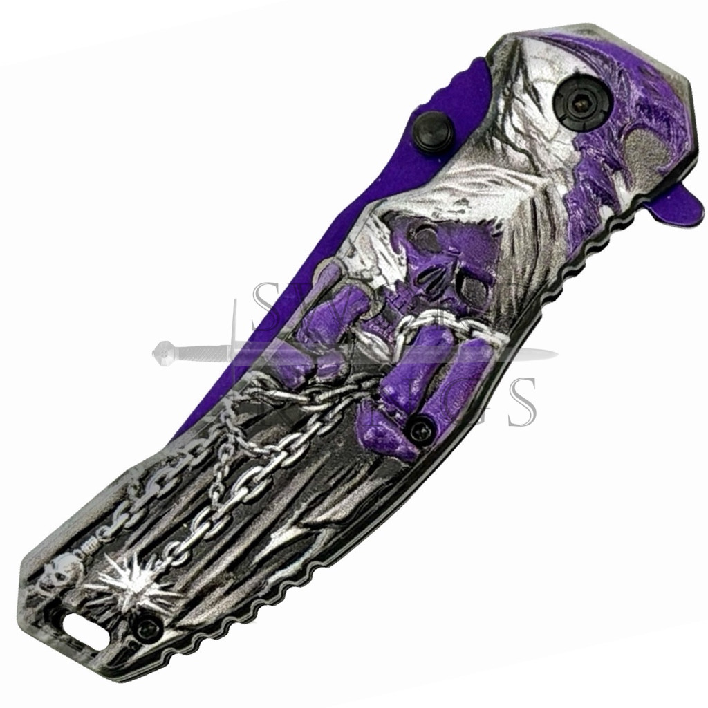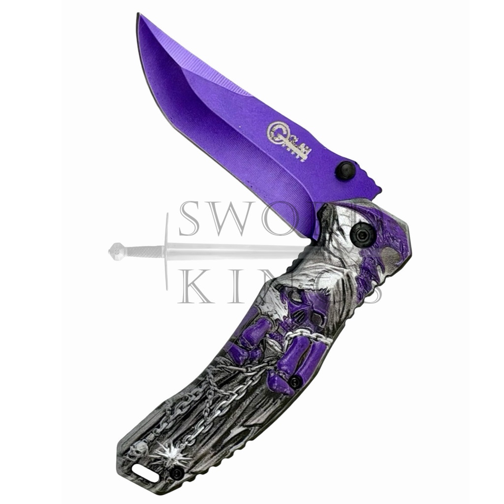 Purple Reaper Folding Penknife with Lanyard Hole and Thumb Stud