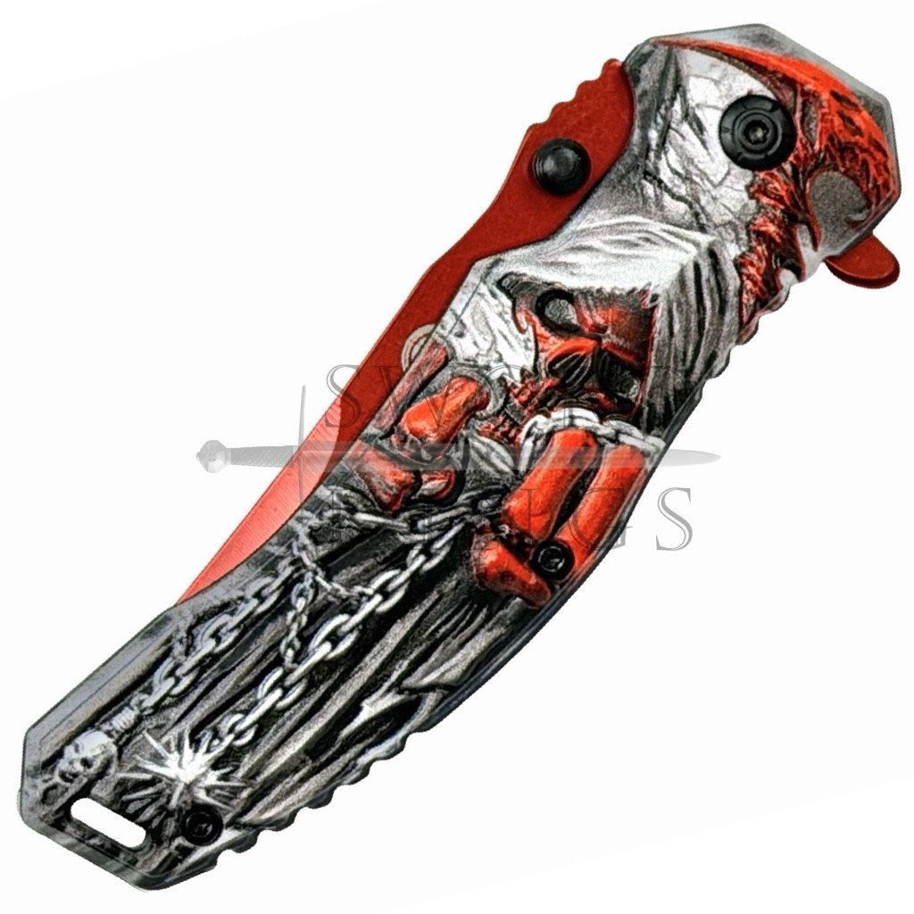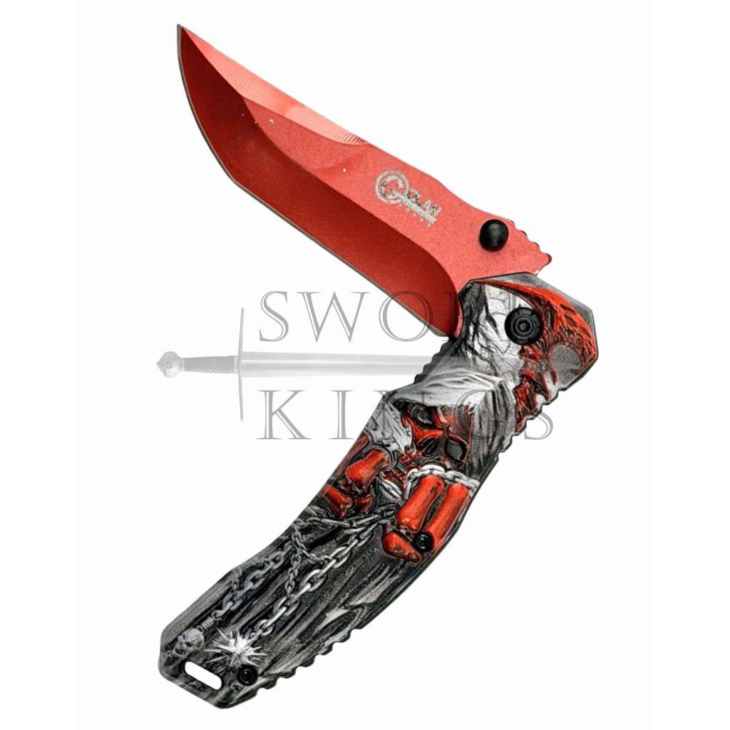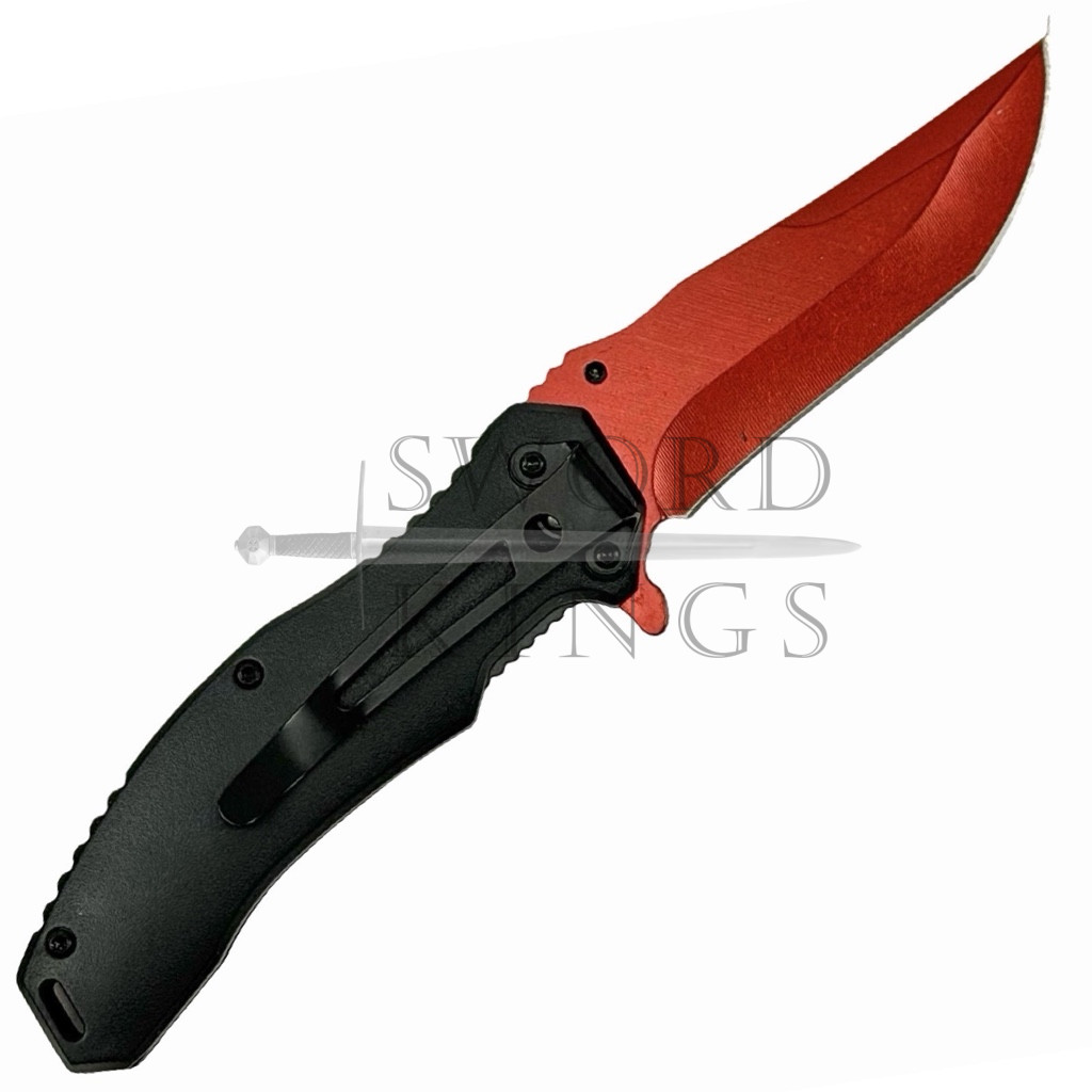 Red Reaper Folding Penknife with Lanyard Hole and Thumb Stud