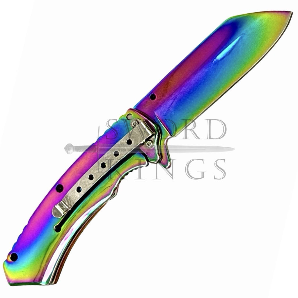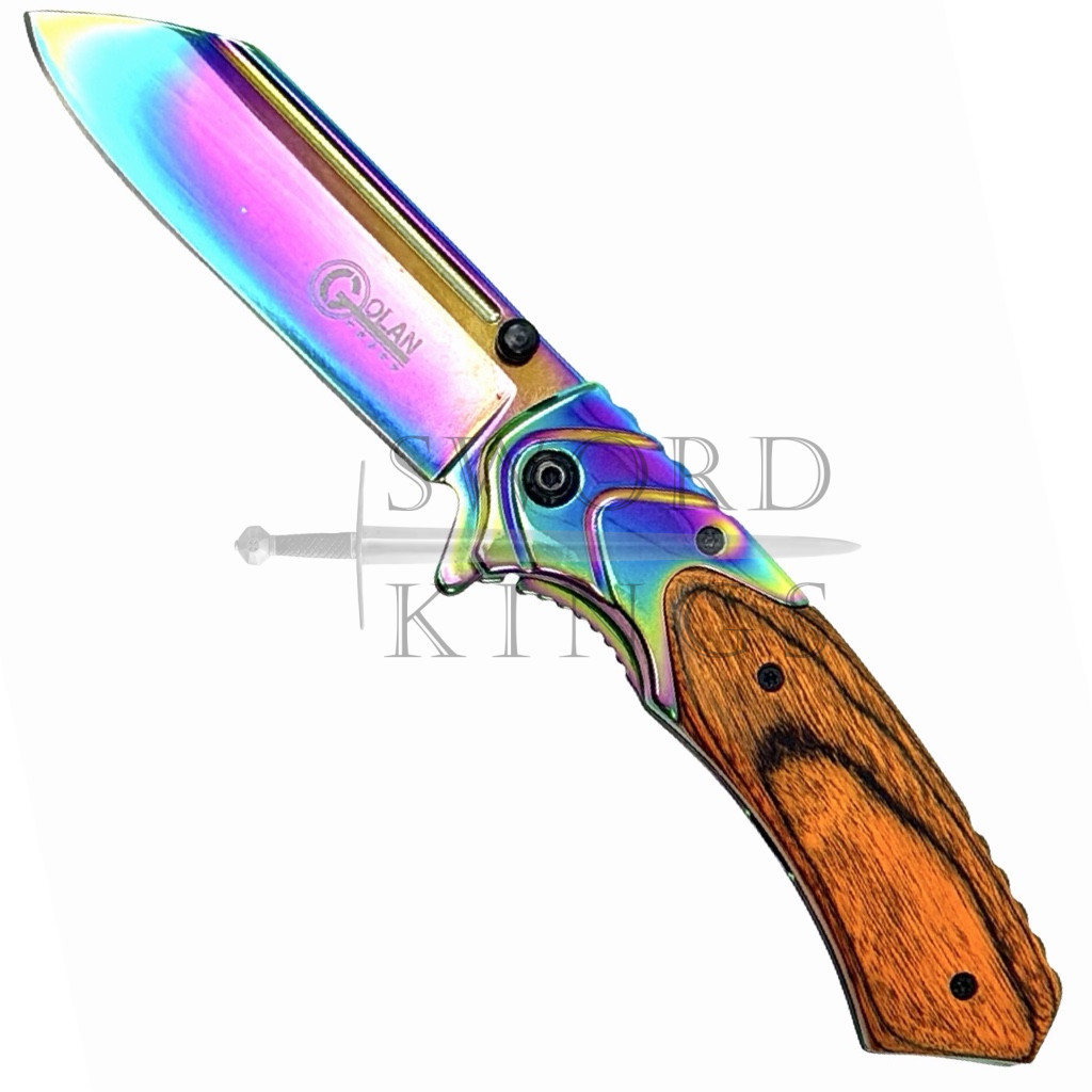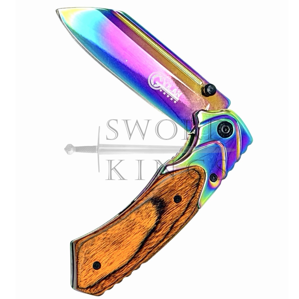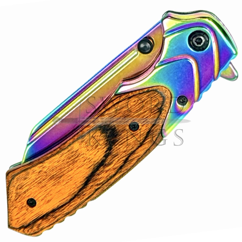 Wood handle with Oil Spill Finish Blade Folding Penknife with Belt Clip